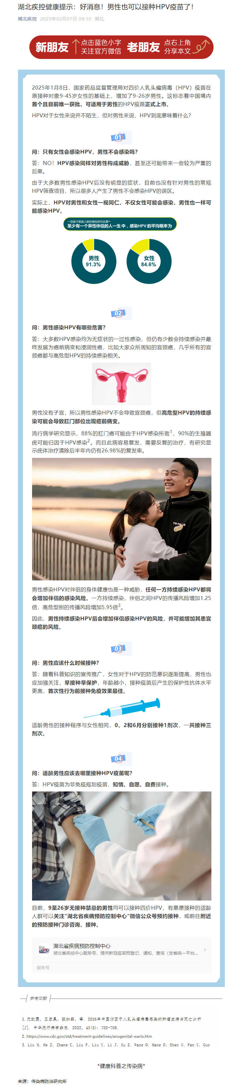 优米官网首页下载安装健康提示:好消息!男性也可以接种HPV疫苗了!