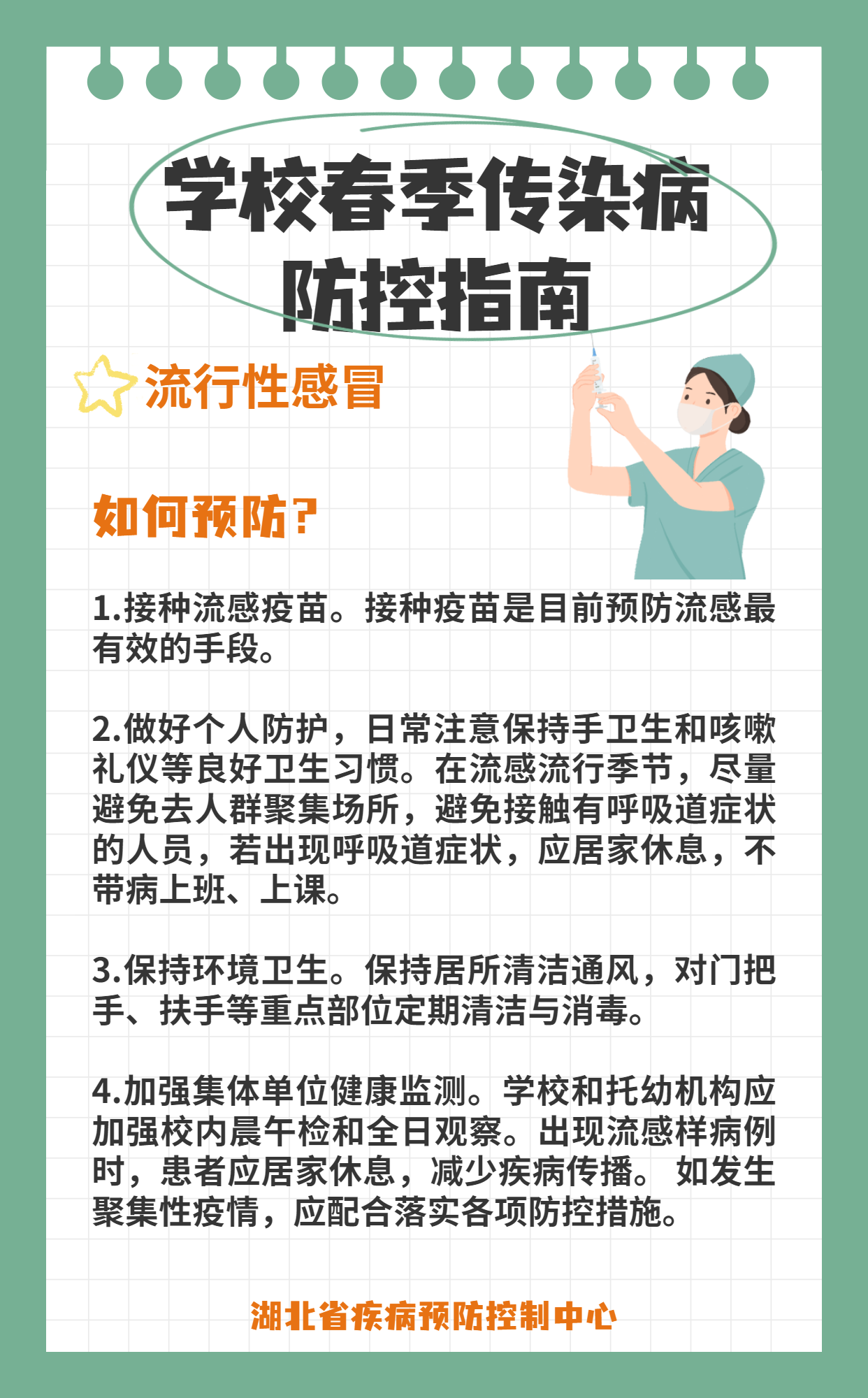 学校春季传染病防控指南:流行性感冒