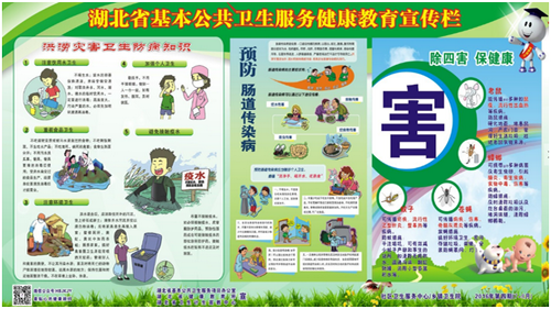 图为:中心在汛期为全市各医卫单位、村卫生室提供的健康教育宣传栏模板