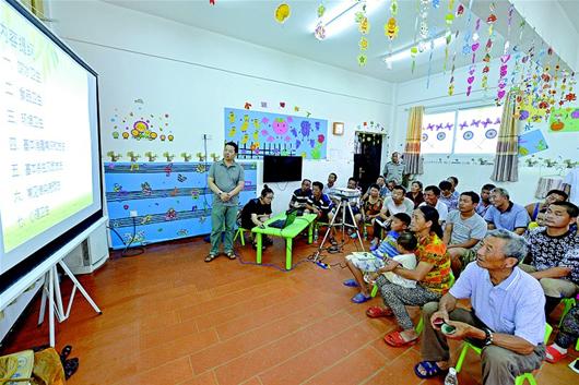 省疾控中心专家为安置群众讲解防病知识。 (记者 倪娜 摄)