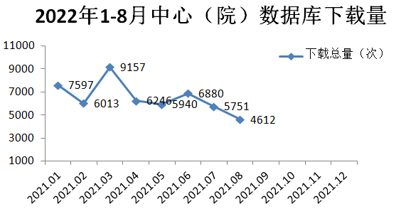7月,数据库总下载量5751次,比去年同期下降21.39%;8月,数据库总下载量4612次,同比下降26.41%。