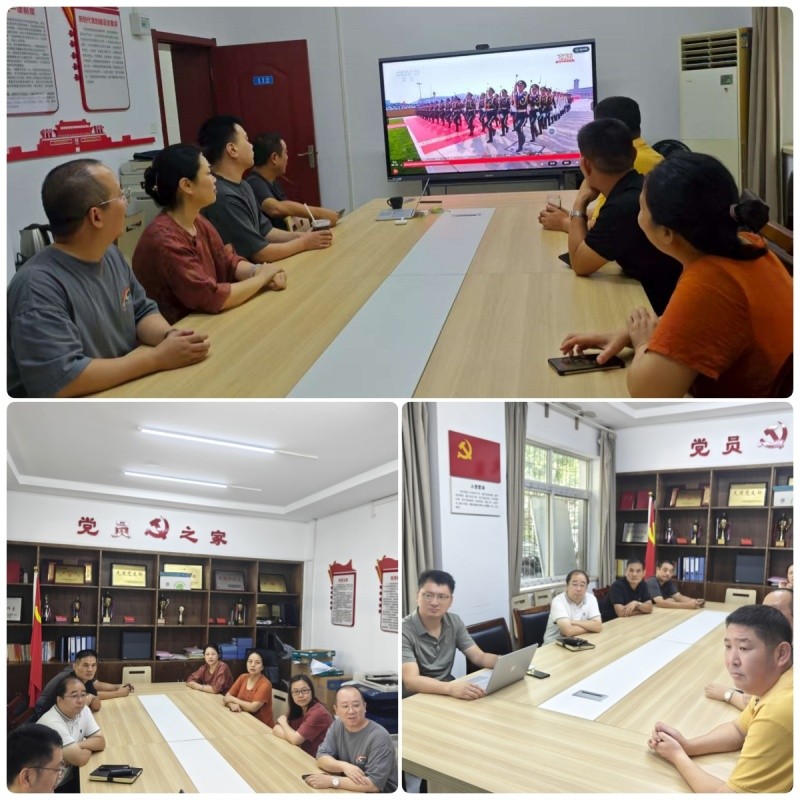 2025年9月3日上午,总务后勤处党支部组织全体党员集中收看了纪念中国人民抗日战争暨世界反法西斯战争胜利80周年阅兵仪式现场直播。大家神情专注地观看屏幕中展现的庄严盛典,共同感受这一具有重大历史意义的时刻。