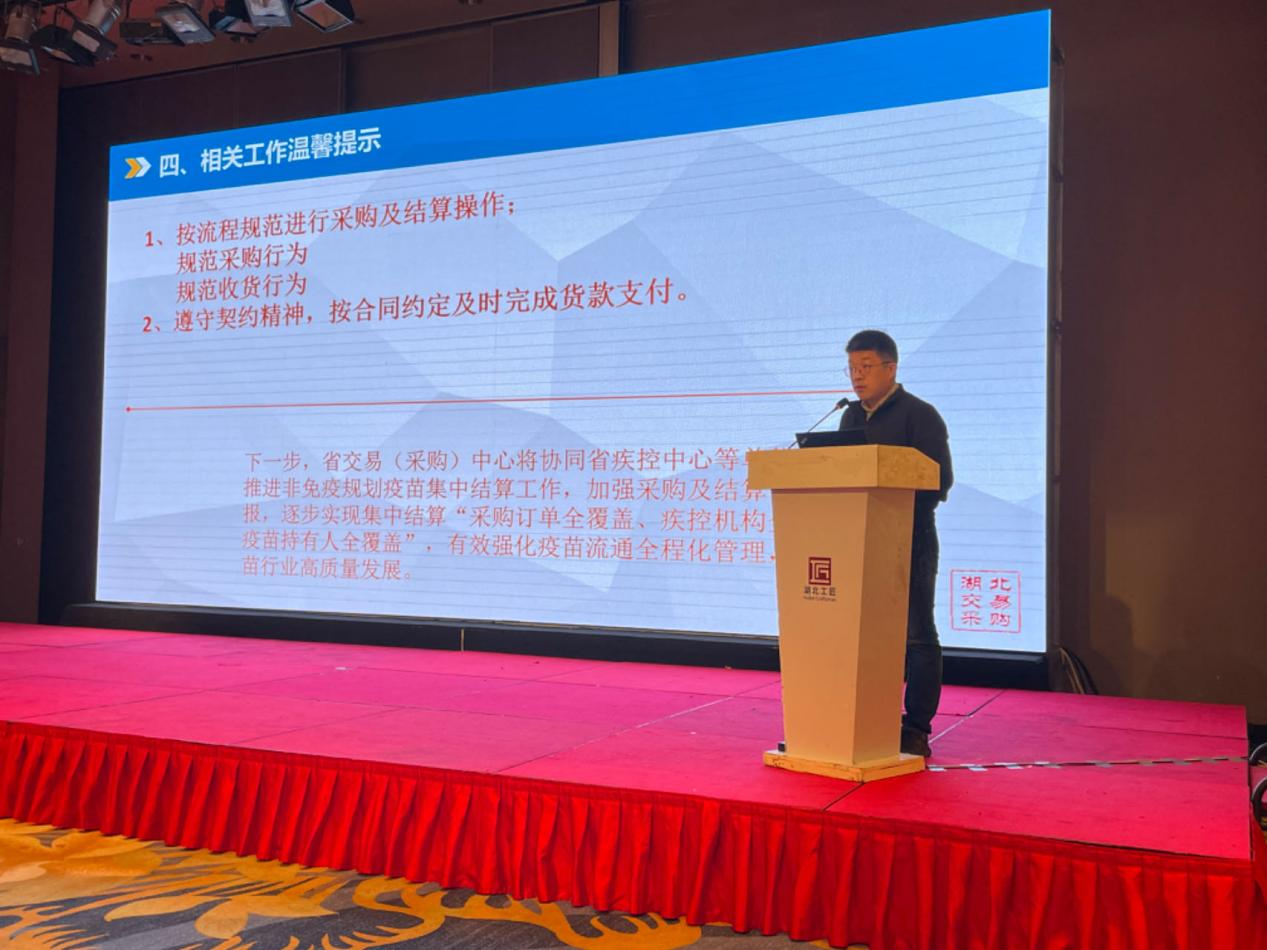 优米365App黄希宝副主任和湖北省公共资源交易中心翁利胜处长在大会开幕式上致辞,充分肯定我省在2023年疫苗管理和非免疫规划疫苗集中结算工作方面取得的成绩,鼓励大家继续落实规范化、精细化、制度化的管理机制和措施,保障疫苗安全,为公众的健康保驾护航。