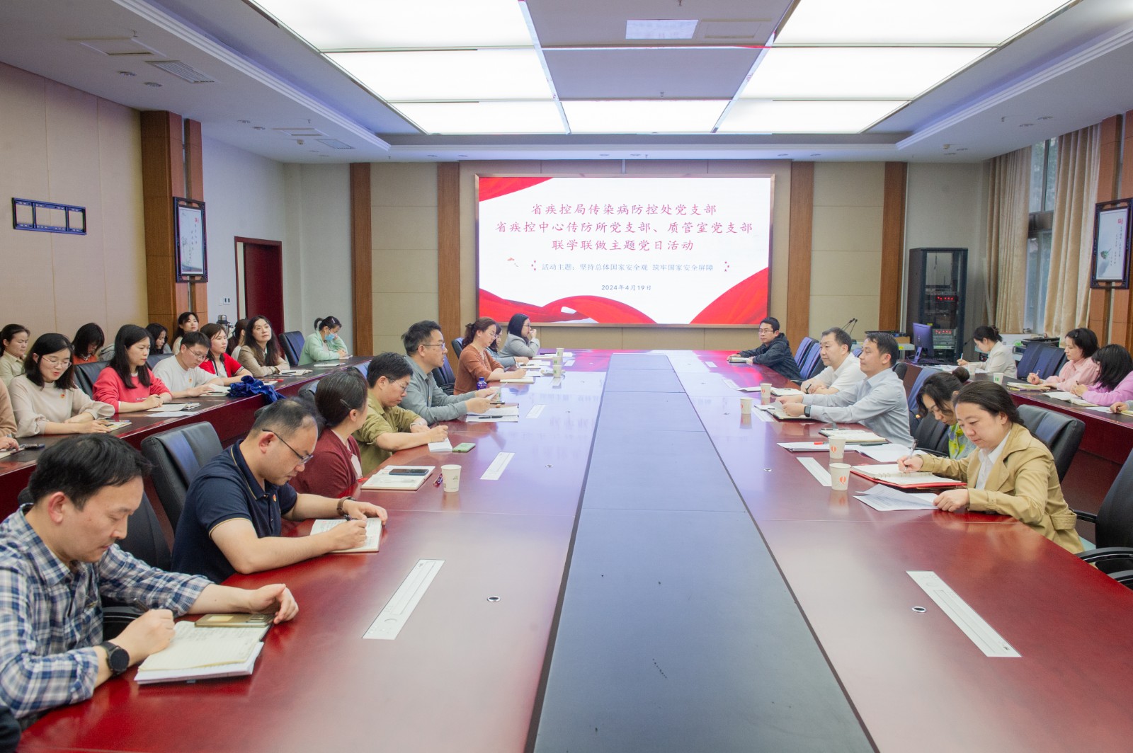 为坚持总体国家安全观,筑牢国家安全屏障,2024年4月19日,省疾控局传染病防控处党支部与省疾控中心传防所党支部、质管室党支部开展了联学联做主题党日活动。省疾控局党组成员/副局长彭旭参加了此次党日活动,活动由省疾控中心传防所党支部副书记蒋洪林主持。