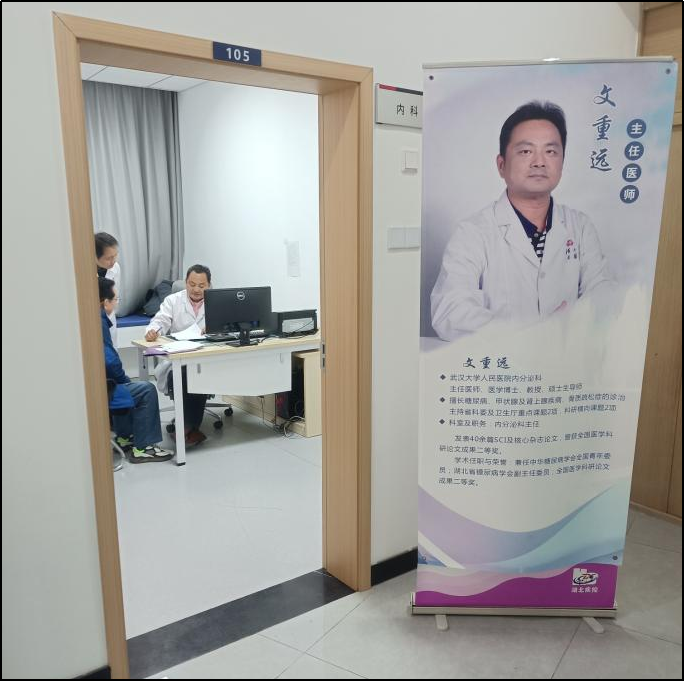 为提升中心(院)职工健康水平,卫监所健康监护部根据2024年底职工体检结果,针对糖尿病等慢性病患者开展专家坐诊活动。健康监护部邀请了武汉大学人民医院内分泌科主任文重远教授,为血糖控制不佳或初次筛查发现血糖升高的职工提供诊治服务。