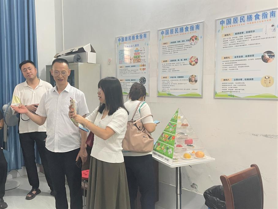 为贯彻落实国务院印发的《“健康中国2030”规划纲要》和国务院办公厅印发的《国民营养计划(2017-2030年)》精神,在国家卫生健康委员会领导、中国疾病预防控制中心组织实施下,我省咸宁市通城县启动营养社区试点创建工作。近日,省疾控中心卫监所营养与食品安全部欧阳英英、张琴陪同中国疾病预防控制中心营养与健康所丁彩翠副研究员、周莹研究员,前往通城县开展营养社区试点建设工作调研。本次调研采取听取汇报、座谈交流、现场查看等方式进行,对通城县“营养社区试点创建”工作实际开展情况进行全面的评估和指导。通城县通过八大举措落实隽水镇雁塔社区营养社区建设,包括建设健康主题场所、宣讲营养健康知识、拓宽网络健教渠道、打造营养示范单元、开展重点人群营养评估、提升社区卫生服务中心营养服务能力、结合慢病综合示范区推行全人群全生命周期健康管理。丁彩翠副研究员、周莹研究员对雁塔社区的营养社区试点创建成效给予了充分肯定,建议将雁塔社区建设营养小屋、营养餐厅等做法,在县域内进一步推广,发挥示范引领的作用。通城县疾控中心主任黎柏棋表示,通城县疾控将结合通城县实际,进一步加强宣传与环境建设,积极创新、大胆探索,持续推进营养社区建设融入到“健康城市”建设体系中,充分发挥试点领航的作用。