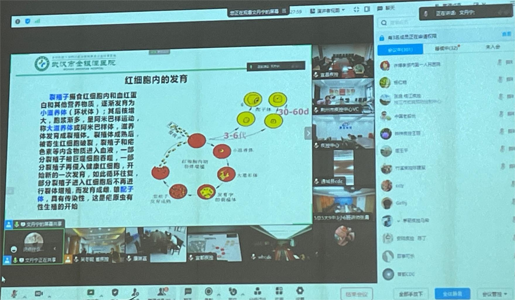 根据国家卫生健康委等13个委(部、局)联合下发的《防止疟疾输入再传播管理办法》(国卫办疾控发〔2020〕26号)和《2023年湖北省寄生虫病防治工作计划》要求,为维持我省疟疾消除状态,巩固消除疟疾成果,我中心举办2023年湖北省输入性疟疾防治能力提升线上培训班。全省各市、州、县疾控中心寄生虫病防控、疫情监测、实验室检测工作的相关负责人与专业技术人员、全省89家疟疾治疗定点医院负责诊治疟疾病例的临床医生共计500余人参加本次培训。会议由省疾控中心血防所朱红副所长主持。